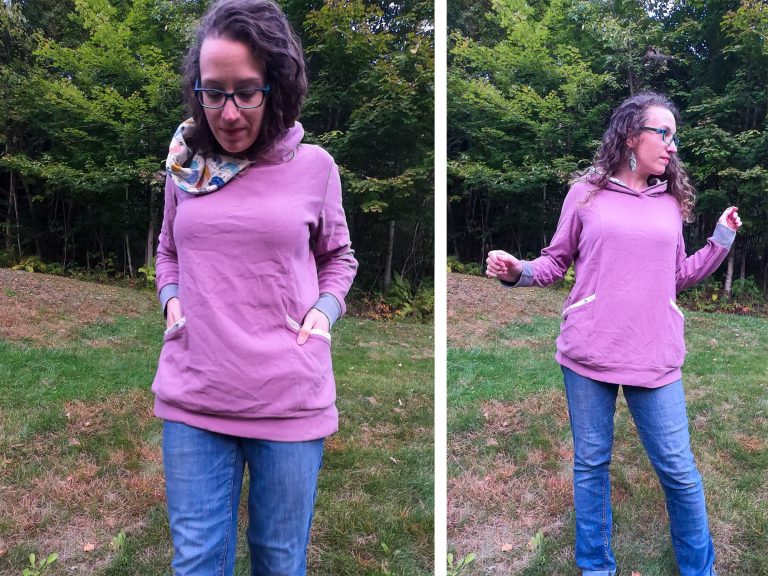 Mom asked for another Dionne Duster Cardigan (which is yet un-made…sorry Mum) and in the order from Nature’s Fabric, I added 3 cuts of bamboo stretch fleece to make a second sweatshirt pattern after the successful Hudson Hoodie from the spring. This one used the pattern Around the Block by Ellie & Mac and I…